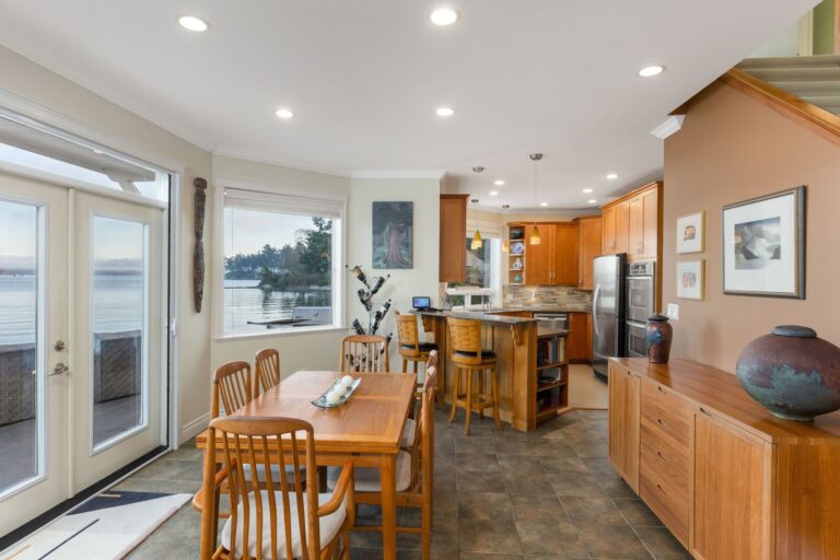 Rare opportunity to own on Sidney’s coveted Fifth Street waterfront. This beautifully maintained ocean-view home offers approx. 2,460 sq.ft. of bright, well-planned living space designed to showcase the spectacular outlook. Expansive picture windows frame serene water views from the main living areas, while the upper level features a vaulted-ceiling primary retreat plus additional bedrooms and flexible family space—ideal for guests or growing families. Enjoy seamless indoor-outdoor living with multiple ocean-facing patios and an inviting pergola lounge area, perfect for sunset entertaining and morning coffee by the shoreline. Complete with an attached garage and set moments to marinas, beaches, seaside trails, shops and dining in charming downtown Sidney—this is true West Coast waterfront living.