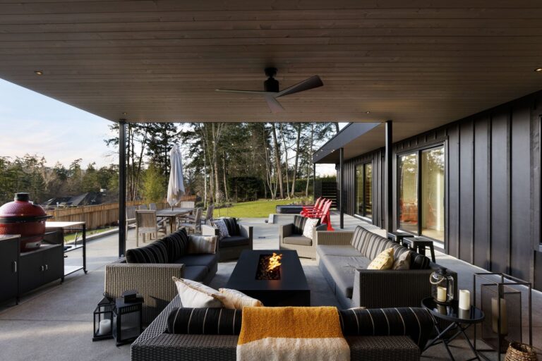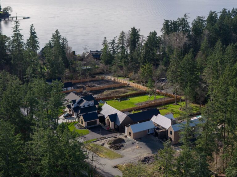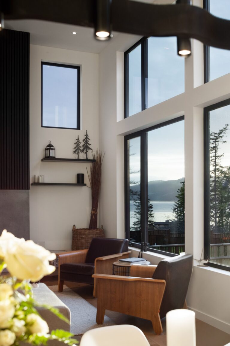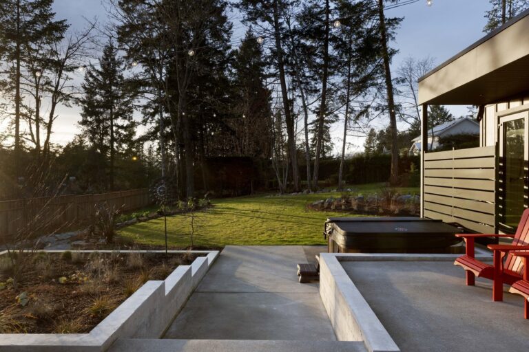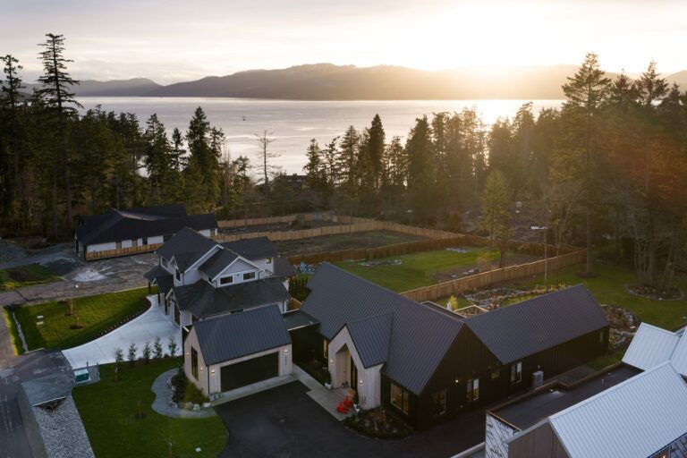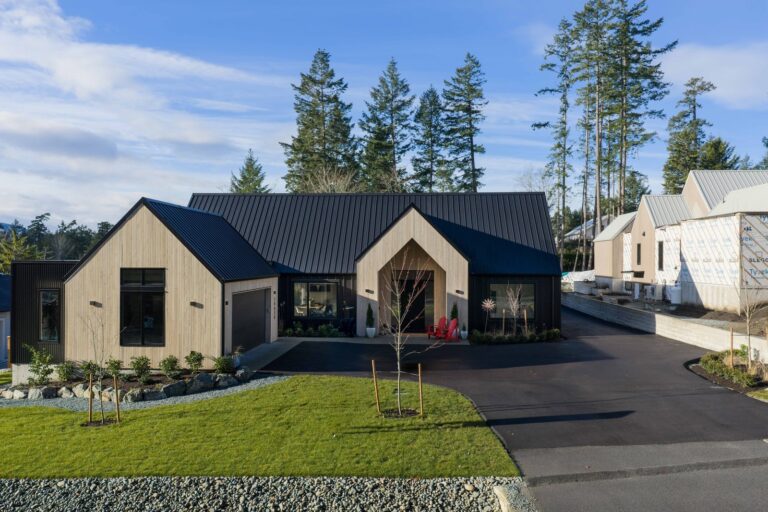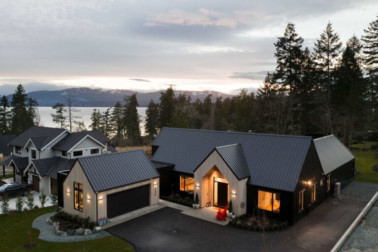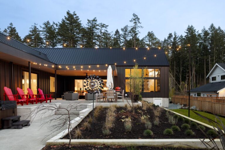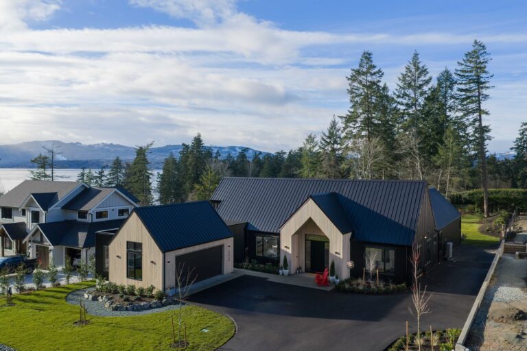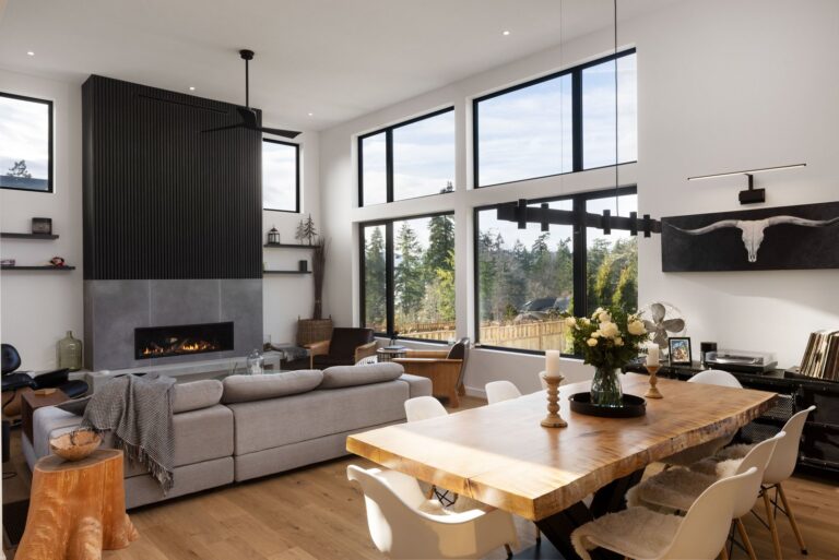 Set on an extensively landscaped half-acre with ocean views in Deep Cove, this exceptional rancher delivers refined single-level living with a thoughtful balance of Scandinavian design and modern luxury. The home offers three bedrooms plus a private office and media room, and three beautifully finished baths. Soaring ceilings, wide-plank hardwood floors, expansive windows, and a gas fireplace with a contemporary concrete mantle create a bright, sophisticated interior. The open-concept living space flows seamlessly into a chef’s kitchen featuring quartz countertops, sleek flat-panel cabinetry, premium appliances, a walk-in pantry, and an oversized island ideal for gathering. The primary suite is a serene retreat with vaulted ceilings, spa-inspired five-piece ensuite, and walk-in closet. Southwest exposure fills the patio with sun, enhancing effortless indoor–outdoor living and ocean vistas. Built by Philco Construction, highlights include a metal roof, heat pump with A/C, oversized double garage, and sunken hot tub. Enjoy peaceful rural privacy just minutes to ferries, airport, marinas, beaches, shops, and Sidney—a rare blend of elegance, comfort, and coastal convenience.