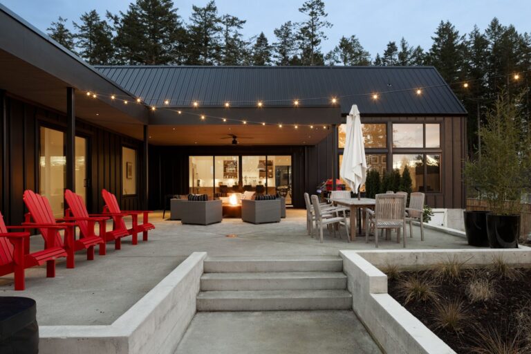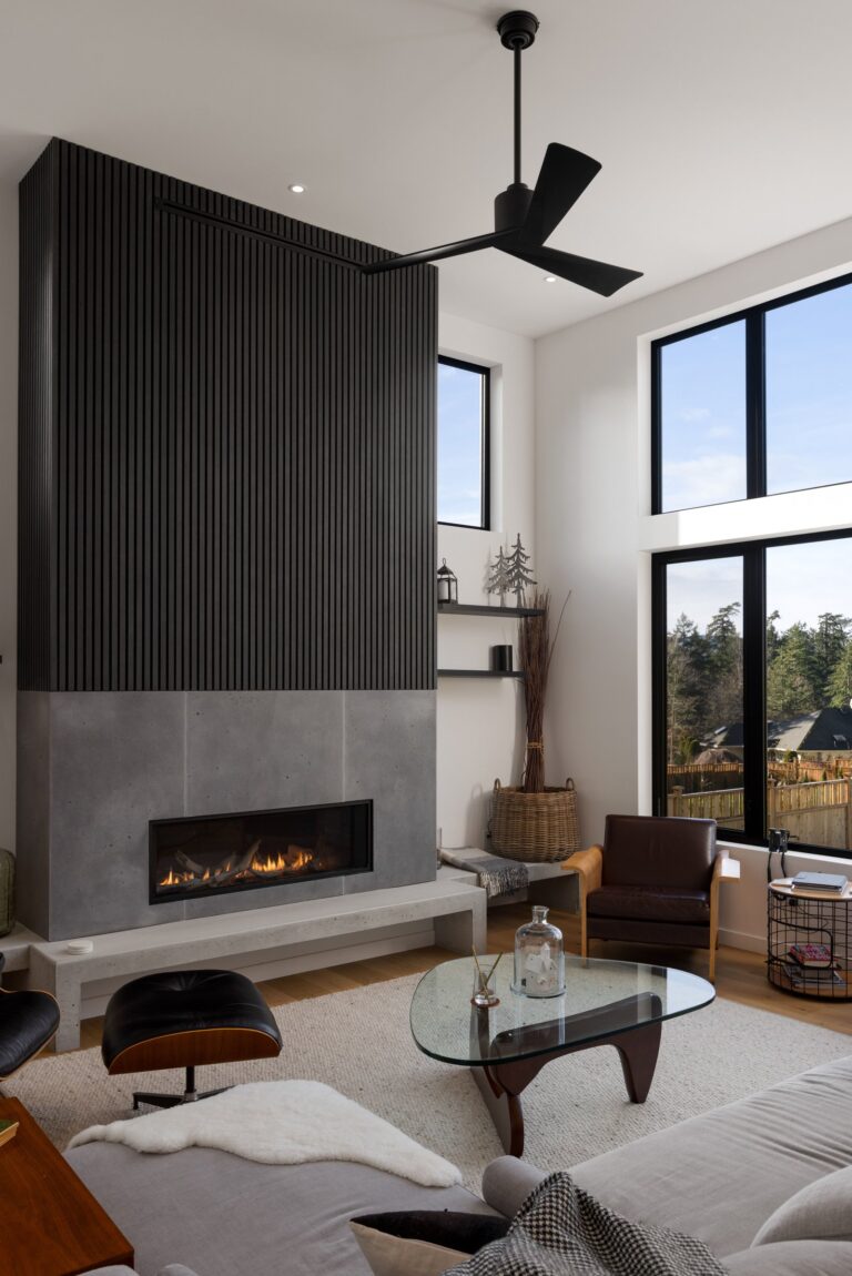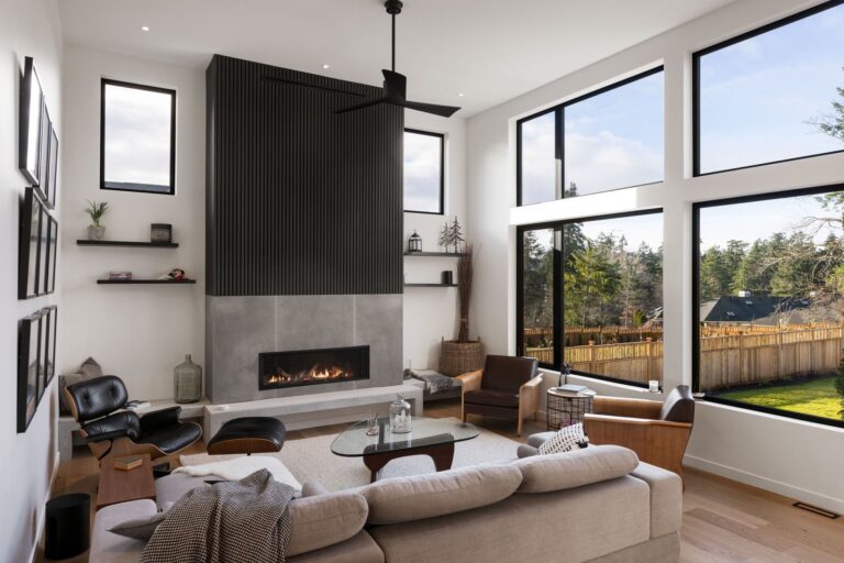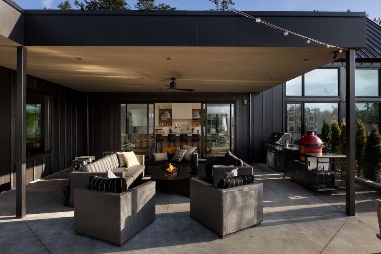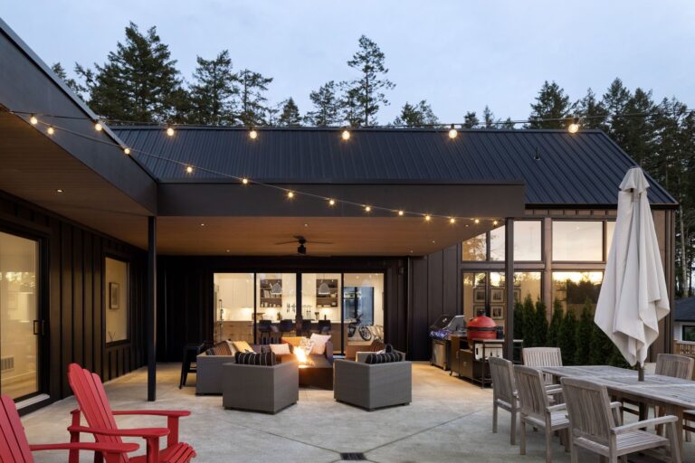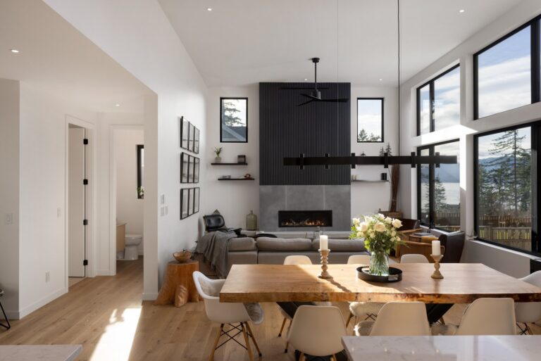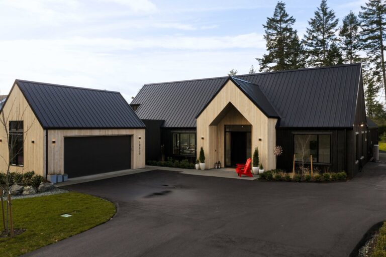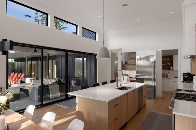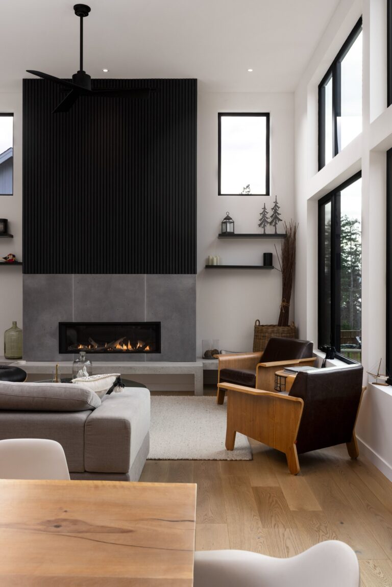 Set on an extensively landscaped half-acre with ocean views in Deep Cove, this exceptional rancher delivers refined single-level living with a thoughtful balance of Scandinavian design and modern luxury. The home offers three bedrooms plus a private office and media room, and three beautifully finished baths. Soaring ceilings, wide-plank hardwood floors, expansive windows, and a gas fireplace with a contemporary concrete mantle create a bright, sophisticated interior. The open-concept living space flows seamlessly into a chef’s kitchen featuring quartz countertops, sleek flat-panel cabinetry, premium appliances, a walk-in pantry, and an oversized island ideal for gathering. The primary suite is a serene retreat with vaulted ceilings, spa-inspired five-piece ensuite, and walk-in closet. Southwest exposure fills the patio with sun, enhancing effortless indoor–outdoor living and ocean vistas. Built by Philco Construction, highlights include a metal roof, heat pump with A/C, oversized double garage, and sunken hot tub. Enjoy peaceful rural privacy just minutes to ferries, airport, marinas, beaches, shops, and Sidney—a rare blend of elegance, comfort, and coastal convenience.