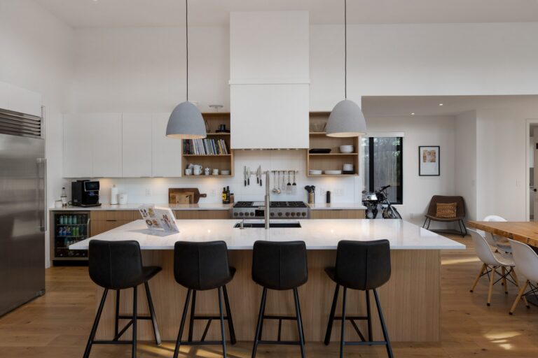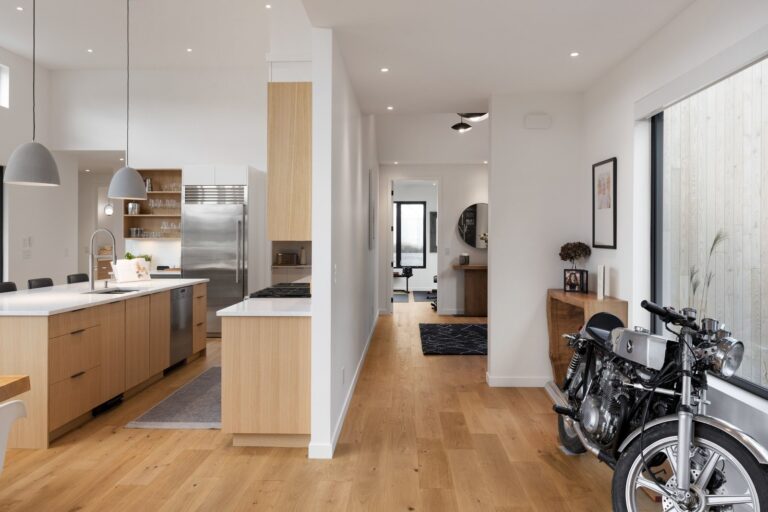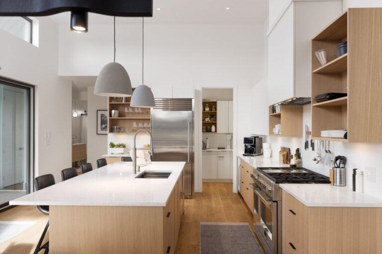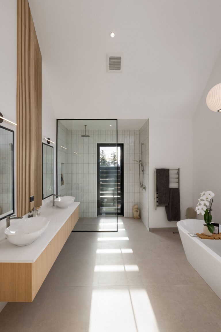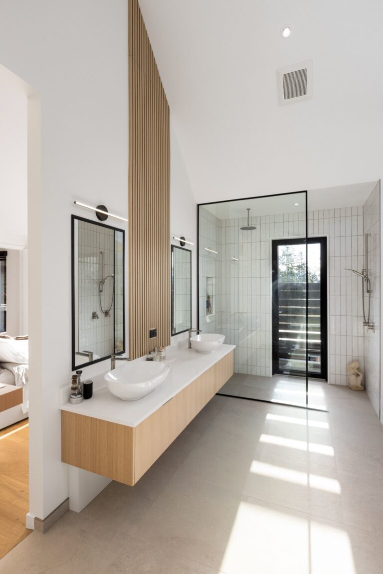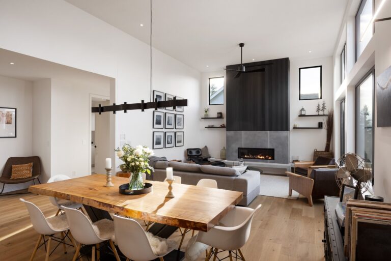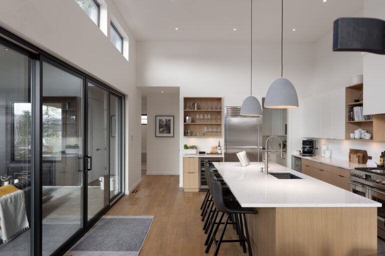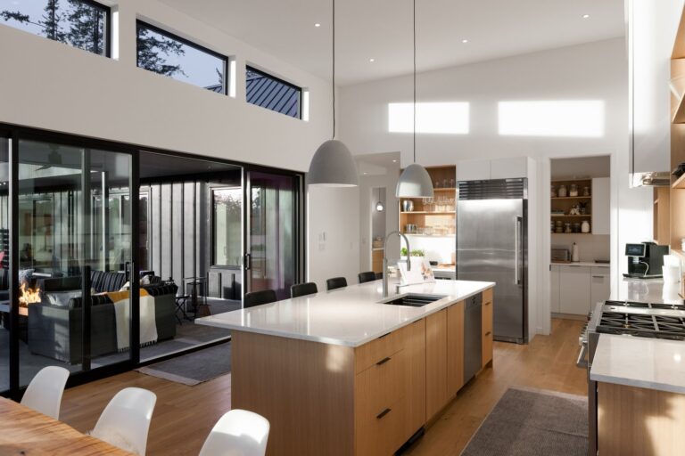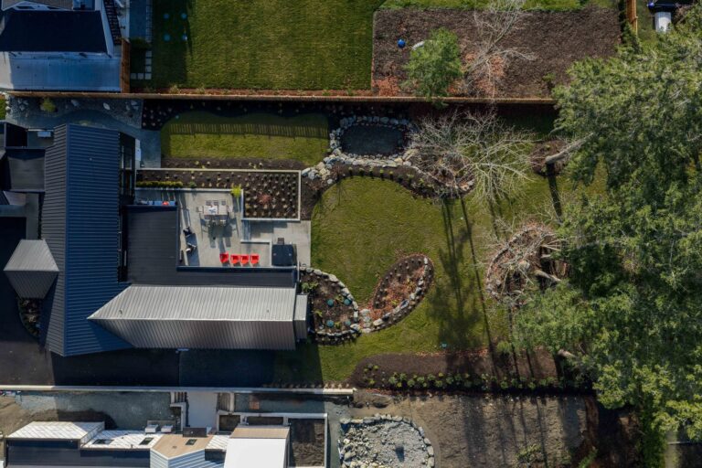 Set on an extensively landscaped half-acre with ocean views in Deep Cove, this exceptional rancher delivers refined single-level living with a thoughtful balance of Scandinavian design and modern luxury. The home offers three bedrooms plus a private office and media room, and three beautifully finished baths. Soaring ceilings, wide-plank hardwood floors, expansive windows, and a gas fireplace with a contemporary concrete mantle create a bright, sophisticated interior. The open-concept living space flows seamlessly into a chef’s kitchen featuring quartz countertops, sleek flat-panel cabinetry, premium appliances, a walk-in pantry, and an oversized island ideal for gathering. The primary suite is a serene retreat with vaulted ceilings, spa-inspired five-piece ensuite, and walk-in closet. Southwest exposure fills the patio with sun, enhancing effortless indoor–outdoor living and ocean vistas. Built by Philco Construction, highlights include a metal roof, heat pump with A/C, oversized double garage, and sunken hot tub. Enjoy peaceful rural privacy just minutes to ferries, airport, marinas, beaches, shops, and Sidney—a rare blend of elegance, comfort, and coastal convenience.