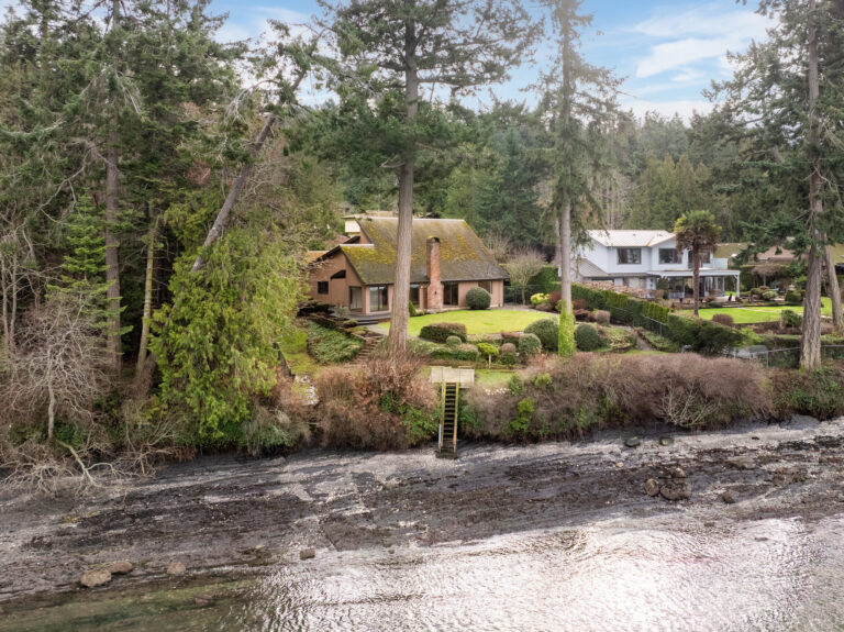 WATERFRONT home with breathtaking panoramic views of Satellite Channel and loads of sunshine! This 3 bed/2 bath home features 2,144 sq.ft of predominantly single level living space, situated on a private .53 acre lot that offers spectacular views & access to your own private beach. Highlights include spacious rooms w/oversized windows allowing the home to be filled w/natural light, sliding patio doors leading to large sundecks, creating an incredible indoor/outdoor connection, vaulted cedar ceilings, double-car garage/workshop, and a well designed floor plan with great potential. Expect stunning sunsets and observe a variety of marine life from this private oasis. Kayak and paddle-board from your backyard, and watch the sailboats pass in your own private park-like setting. Conveniently located just minutes from BC Ferries, the airport, and the Town of Sidney, this low bank oceanfront property is a rare find that offers lots of opportunity to add additional value.