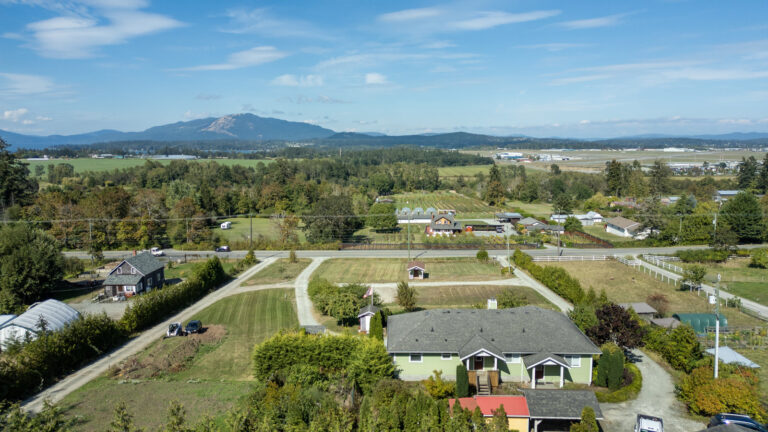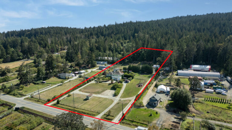 Set on a quiet, tree-lined street in the heart of North Saanich sits a picturesque, 6.88-acre property. Sun-drenched, with rolling fields and fruit trees, the property is home to a 5-Bed, 3-Bath, 2907-sqft. main house as well as a 2-Bed, 1-Bath, 654-sqft. suite. This split-level design offers second-story living with an open layout. Enjoy a country kitchen with shaker cabinetry, warm wood tones, and a large island. An open dining and living area offer a connected feel among the spaces, while French doors and windows offer a seamless connection to the outdoors. 3 Bedrooms, including the primary suite, make up the second floor, with an additional 2 bedrooms on the main level. Also on the main level is the suite. With a private entrance and patio space, the suite offers the same light, bright, and airy feel and garden views. Zoned RA-3, the property offers a number of farming opportunities. Enjoy the rural setting, while being just minutes from local schools, parks, trails, and beaches.