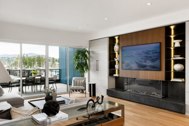 Brand-new luxury waterfront townhome in Sidney, BC, just steps from a top-tier marina, dining, and shops. Offering over 3,200 sq ft of curated living space, this home lives like a detached residence, ideal for downsizing without compromise. The main level features a full-size chef’s kitchen, dining area, gas fireplace, spacious patio, and a primary bedroom with spa-inspired ensuite. Upstairs offers a second primary suite plus two outdoor living areas, including west-facing ocean and marina views for sunset enjoyment and a southwest patio perfect for gardening. Additional highlights include a private elevator, over-height double garage with storage, and a self-contained suite ideal for guests or a professional practice. Walk to beaches, Roberts Bay and enjoy kayaking and paddleboarding from your doorstep. A rare opportunity for low-maintenance waterfront living.