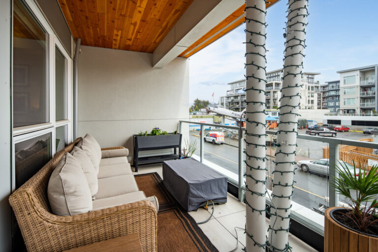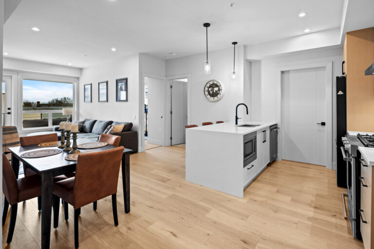 Welcome to The Beacon – Luxury Living in Downtown Sidney. Set in one of the city’s most sought-after condo developments, this 2-Bed, 2-Bath unit offers over 958 sqft. of living space. With its 9-ft ceilings, grand windows, east-facing exposure, and an open floor plan, the home is bright, airy, and full of natural light. The kitchen features warm wood cabinetry, quartz countertops, and stainless steel appliances, and sits open to the dining and living areas for a connected feel among the spaces. Elevated details, from wide-plank hardwood flooring to herringbone tile work, can be seen throughout the home. Enjoy a primary suite, complete with a 4-piece ensuite and walk-in closet, as well as a second bedroom and bathroom, in-suite laundry, and over 250 sqft of outdoor patio space. Appreciate the convenience of condo living with secure underground parking, storage, and the city’s best restaurants, shops, and markets just steps from your door.