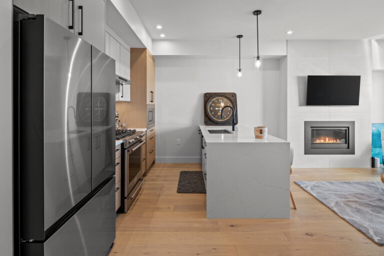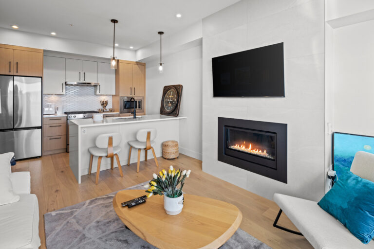 Immerse yourself in luxury living within Sidney's coveted new development, The Beacon on Beacon. This pristine 1-bed/1-bath sanctuary boasts a bright, open-concept layout designed for optimal efficiency and functionality. With timeless West Coast charm, this home sets a new standard in quality construction. The chef's kitchen features stainless steel Kitchen Aid appliances, an oversized island with quartz countertops, seamlessly flowing into the dining/living area and balcony offering panoramic views of Sidney. Enjoy the ambiance with 9' ceilings, abundant natural light from oversized windows, and a cozy natural gas fireplace. Stay comfortable year-round with fully ducted heating and air conditioning. A secure underground parking with fob entry, storage, and bike facilities add convenience. Indulge in the perks of condo living with restaurants, shops, parks, and transit steps away. This west-facing, centrally located unit, is sure to meet the expectations of the most discerning buyer.