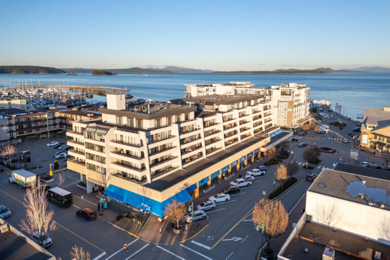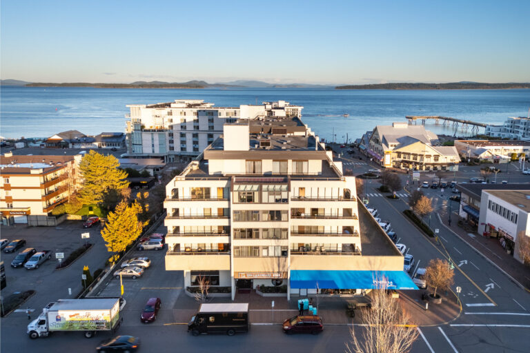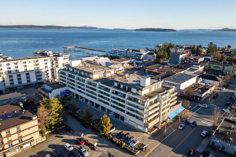 Beautiful South West facing 1 bed/1bath condo with ocean views! Featuring an open and functional floor plan with ample windows and sliding doors that is fill the home with natural light. Step outside onto the wrap-around balcony and take in the ocean views and warm evening sun. The Landmark building is constructed w/ concrete & steel and offers this incredible unit a secure underground parking stall and a private storage locker. Conveniently located in the heart of Sidney and walking distance to restaurants, shops, and transit, this is an incredible condo offering outstanding quality and value.