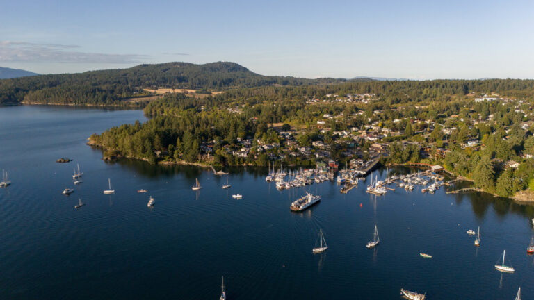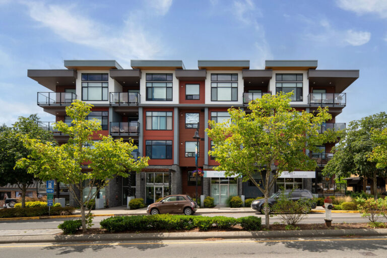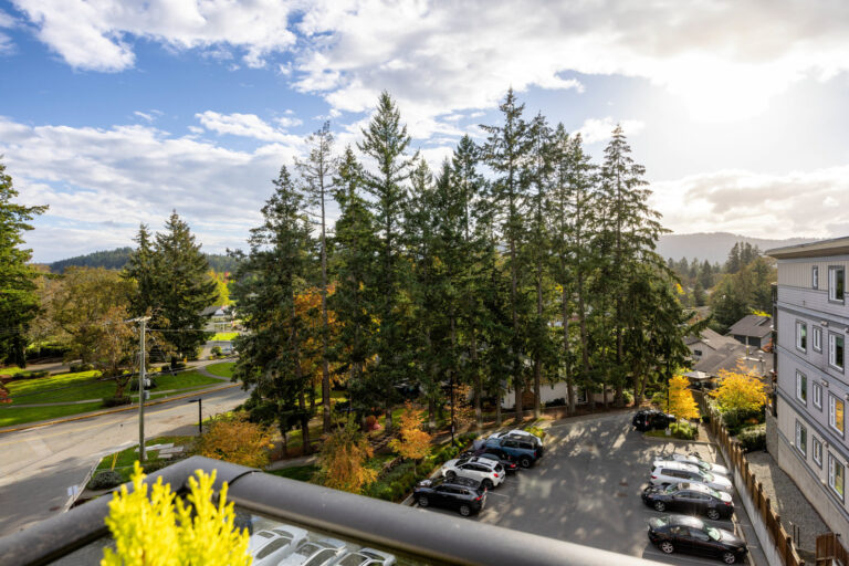 Stunning 1,056 sq.ft West facing penthouse, offering luxurious living in the heart of Brentwood Bay. Featuring soaring ceilings, designer finishes, and an open concept layout, this exquisite home is sure to impress. Highlights include 2 beds/2 baths, 12’ vaulted ceilings, gourmet kitchen w/ quartz counters & premium KitchenAid appliances, engineered oak hardwood flooring, n/g fireplace & heat-pump w/ A/C. Step outside your doors onto a spacious North-West corner balcony, perfect for enjoying incredible sunsets and the warm evening sun. This well-appointed unit comes equipped with a secure ground level parking stall and a private storage locker. Conveniently located in the vibrant community of Brentwood Bay & walking distance to restaurants, shops & transit, this is an incredible condo, offering outstanding quality and value.