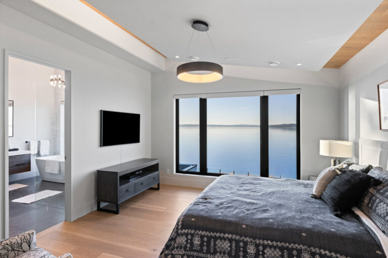 Built by GT Mann Contracting with uncompromised quality and impeccable attention to detail, this outstanding low-bank waterfront home offers panoramic ocean views and sophisticated style. Highlights include a pivoting 8’ fir front entry door, 20’ ceilings in the living room, oversized floor to ceiling windows and nano-doors doors that seamlessly blend the interior and exterior living spaces. The designer kitchen features a Dacor premium line of appliances, Dekton waterfall countertops, and butler’s pantry. From the master bedroom you will enjoy stunning ocean views and the gorgeous ensuite features a large walk-in shower with seamless transition, dual rain head showers, and 6’ freestanding tub. Outside the 1281 SF patio with built-in kitchen, built-in speakers & hot tub is perfect for entertaining. Experience stunning sunrises and watch the boats sail by from this truly spectacular home. Online brochure available for complete list of impressive finishing details.