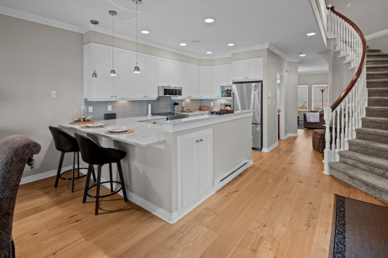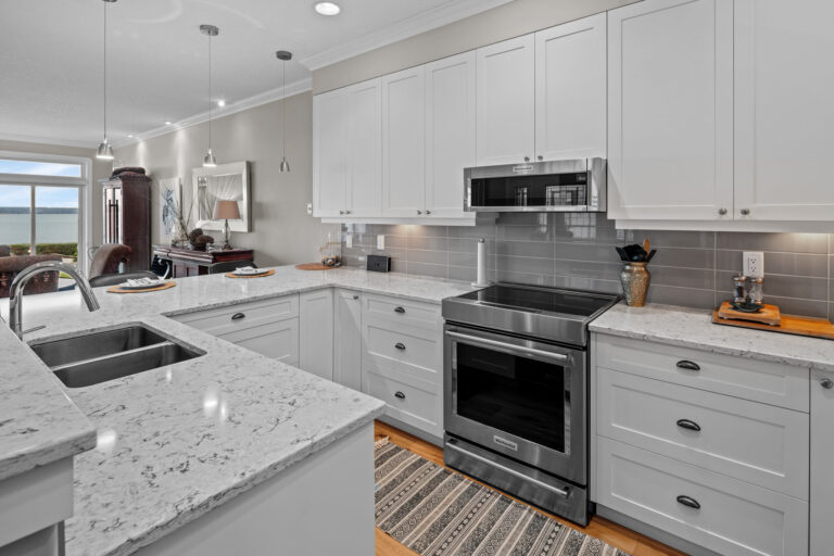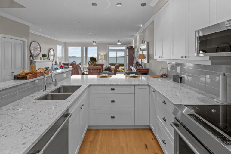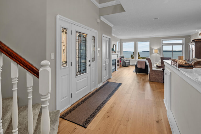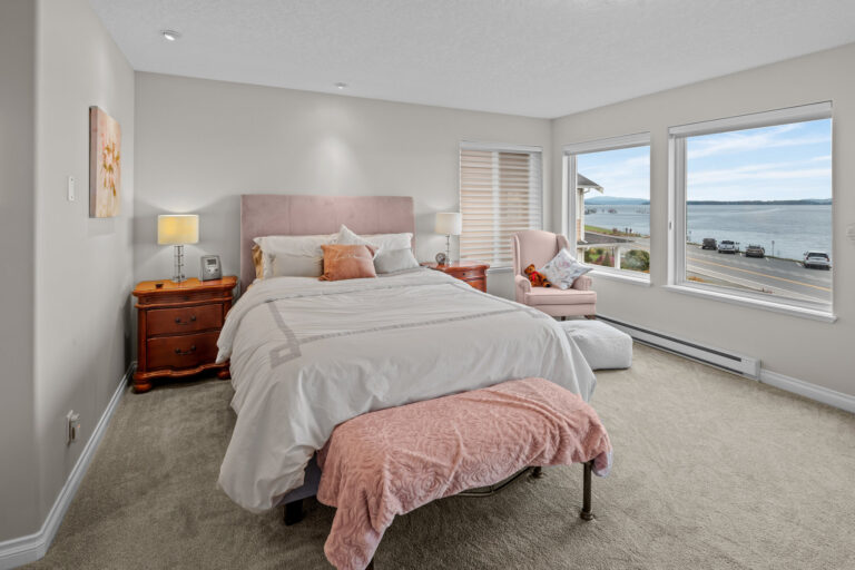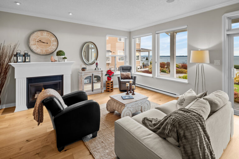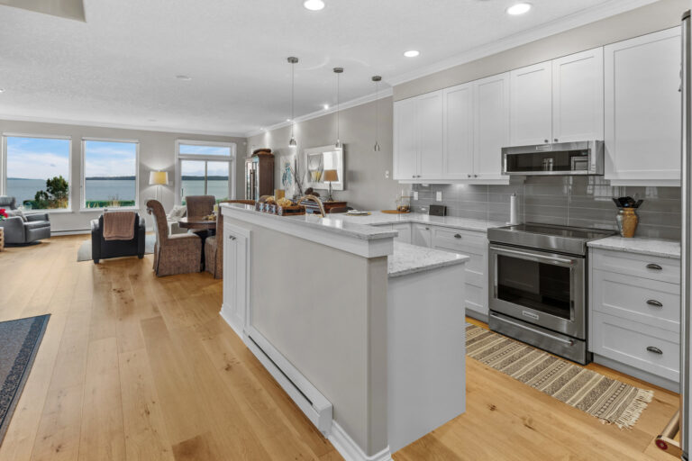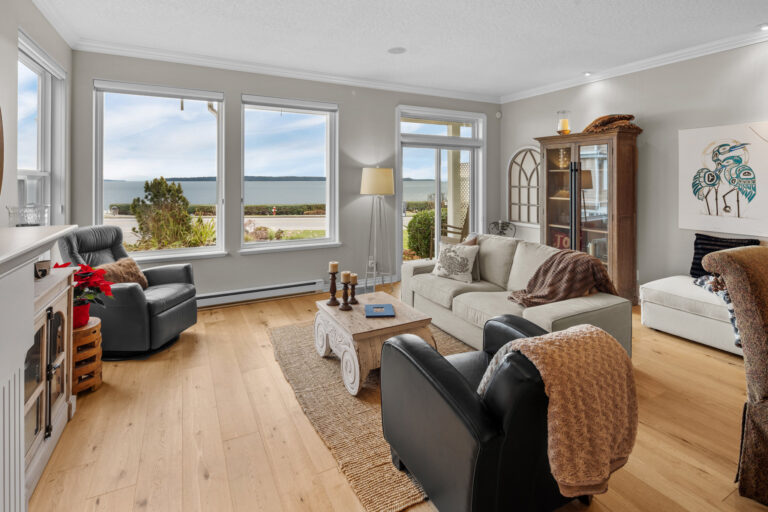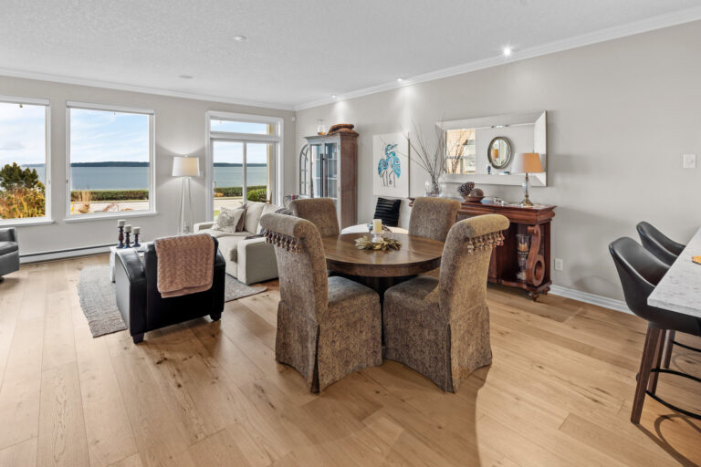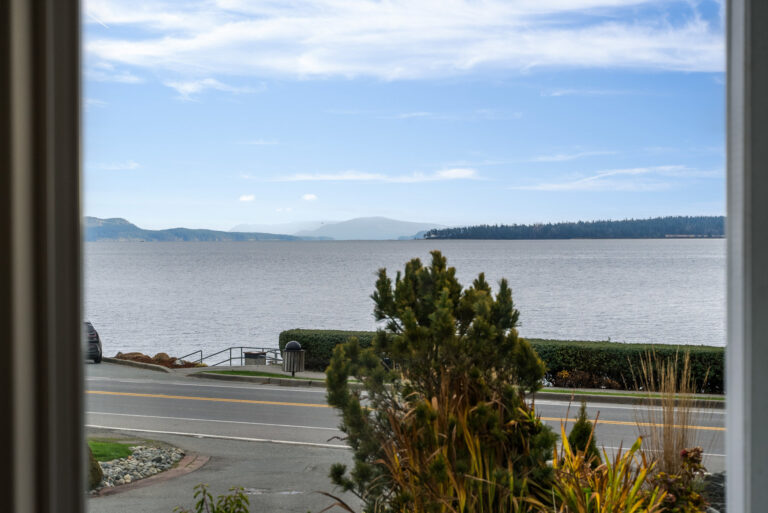 Set along Sidney’s Waterfront Walkway sits the perfect coastal retreat. Blending comfort, luxury, and breathtaking views, this 3-Bed/3-Bath, 2088-sqft. duplex offers an elevated take on oceanfront living. The home, with its 9-ft. ceilings, panoramic windows, and open floorplan, is bright, airy, and full of natural light. Neutral colors, crown moulding, and wide-plank oak flooring add to the serene feel. A spacious, open-concept kitchen – complete with new cabinetry, stainless steel appliances, and granite countertops – sits open to the dining and living areas, all of which overlook the unobstructed ocean views. The home offers elevated upgrades throughout, including a natural gas fireplace, hot water on demand, and custom window coverings. Outdoors offers a private, fenced rear yard and patio with western exposure, as well as a garage and additional parking stall. Located just steps from the beach and a leisurely stroll to downtown Sidney.