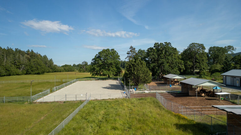 Sprawling 25.92-acre ocean view estate in picturesque North Saanich with two residences and equestrian facilities. Privately set within the ALR, this level, arable property was previously certified organic and offers endless potential for farming, equestrian use, or multi-generational living. The main Pan-Abode style home features a primary bedroom with ensuite, two additional bedrooms (including one currently used as an office), a bright kitchen, and spacious living room. Downstairs offers 60% finished living space with the remaining 40% easily completed. The second 2,100 sq.ft. residence includes 4 beds, 2 baths, and recent updates. Outdoors, enjoy a heated industrial outbuilding with 9 garage doors, multiple workshops, insulated horse stalls, and a tack room. The illuminated riding arena was resurfaced in 2023 with LED lighting, excellent drainage, and is now legal dressage size. An exceptionally rare opportunity just minutes from Deep Cove, Sidney, BC Ferries, and the airport.