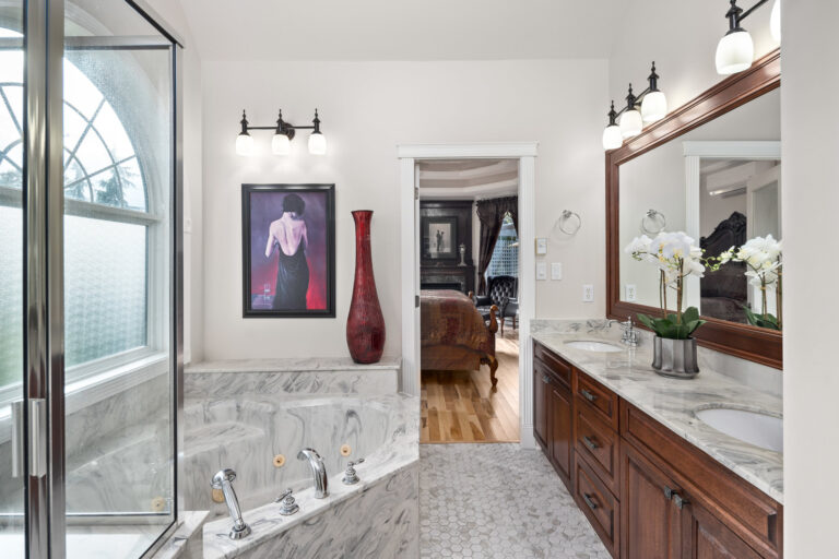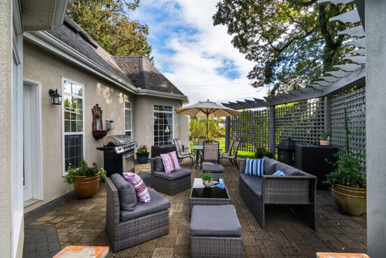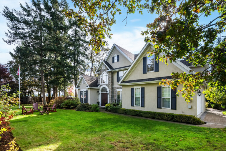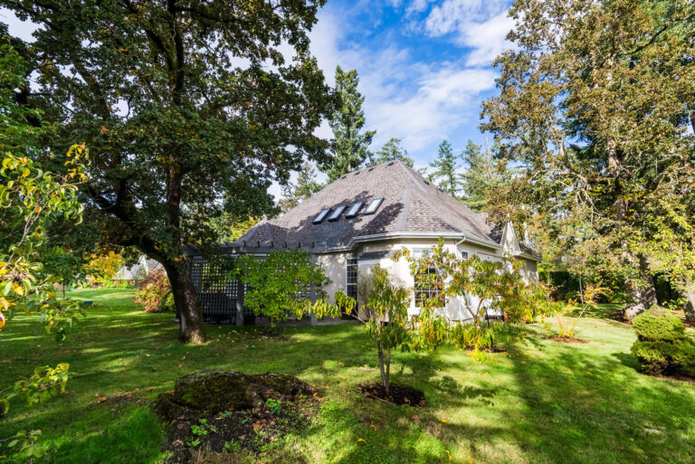In the established and sought-after Ardmore area sits a picturesque family home in an equally picturesque location. On a one-acre parcel, perfectly maintained with mature landscaping, gardens, decorative arbours, and fruit trees, sits a 4-Bed/3-Bath, 2,750-sqft. home along with a 2-Bed/2-Bath, 980-sqft. guest house. The main home, marked by French windows, over-height ceilings, and architectural detailing throughout, offers a traditional style and layout, with a home office off the foyer, formal dining and living areas, and an open kitchen and windowed breakfast nook. The primary suite, also on the main floor, comes complete with a fireplace, coffered ceilings, a lux ensuite, and walk-in closet. 3 additional bedrooms are located on the second floor, each with their own walk-in closets, as well as a shared double-vanity bathroom. The property, private, tree-lined, and sun-drenched, is truly spectacular, inside and out. The double gates as you approach are just the beginning…